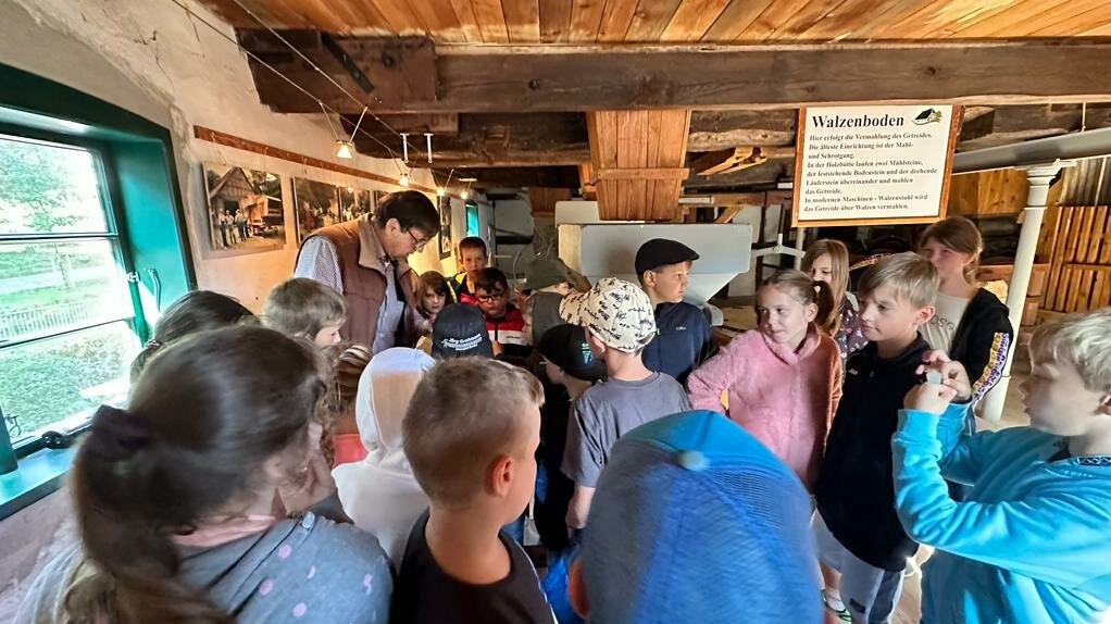 Eine Mühle kann ein ganz vielfältiger Lernort sein. Das Thema „Vom Korn zum Brot“ ist ein klassisches Thema im Sachunterricht der 3. Klasse in der Grundschule. Aber auch für weiterführende Schulen bis hin zu den Berufsschulen sind Mühlen interessante Lernorte, denn sie zeigen zum Beispiel „analoge“ Maschinentechnik in vielfältigen Entwicklungsstufen und machen Funktionsweisen nachvollziehbar. Inzwischen gibt es landesweite Netzwerke, an denen man sich als Anbieter orientieren kann. In NRW gibt es zum Beispiel das Netzwerk „Kulturstrolche“. Dort erfahren Sie unter anderem, welche Anforderungen an einen Lernort gestellt werden.