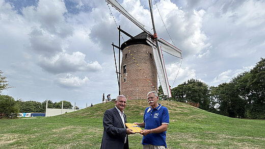 Für den Rheinischen Mühlenverband e.V. gratulierte der Landesvorsitzende Reinhold Pillich gemeinsam mit Geschäftsführer Dr. Ferdinand Schmitz und Vorstandsmitglied Michael Jäger und überbrachte in seiner Funktion als Präsident der Deutschen Gesellschaft für Mühlenkunde und Mühlenerhaltung e.V. die Grüße der DGM.